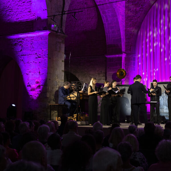 Tout naît du Consort, ce noyau de neuf chanteurs où l’individu s’efface au profit d’un instrument unique et souverain. Dans cette formation à un par voix, le groupe travaille en autonomie totale, sans direction extérieure. C’est ici, dans l’intimité de la musique de chambre, que se forge notre identité : une fusion des timbres d’une pureté presque cristalline et une écoute mutuelle de chaque instant.