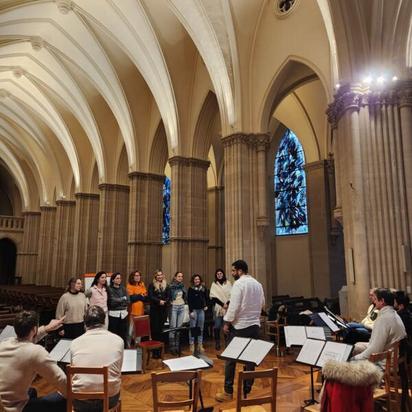 Enfin, pour aborder les cimes du grand répertoire, L’Ensemble la Sportelle se déploie en Chœur d’Oratorio. Fort de vingt-cinq chanteurs, l’ensemble dialogue alors avec l’orchestre ou le grand orgue. Mais là où la masse pourrait devenir confuse, notre structure pyramidale garantit la clarté : c’est la rigueur et la précision du Consort qui continuent d’irriguer cette formation monumentale. Qu’il s’agisse de murmurer une confidence ou de clamer la majesté d’un Requiem, notre conviction demeure identique : porter, avec la même ferveur, un message de beauté et d’espérance.